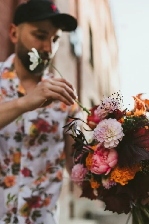 Hue Florals specializes in bold, modern arrangements that bring unexpected color and edge to traditional floristry. So when it came time to capture his brand in photos, a typical garden backdrop just wouldnβt do. We knew we needed something that would match the vibrance and vision of his work β and thatβs exactly why we took this branding session to the streets.